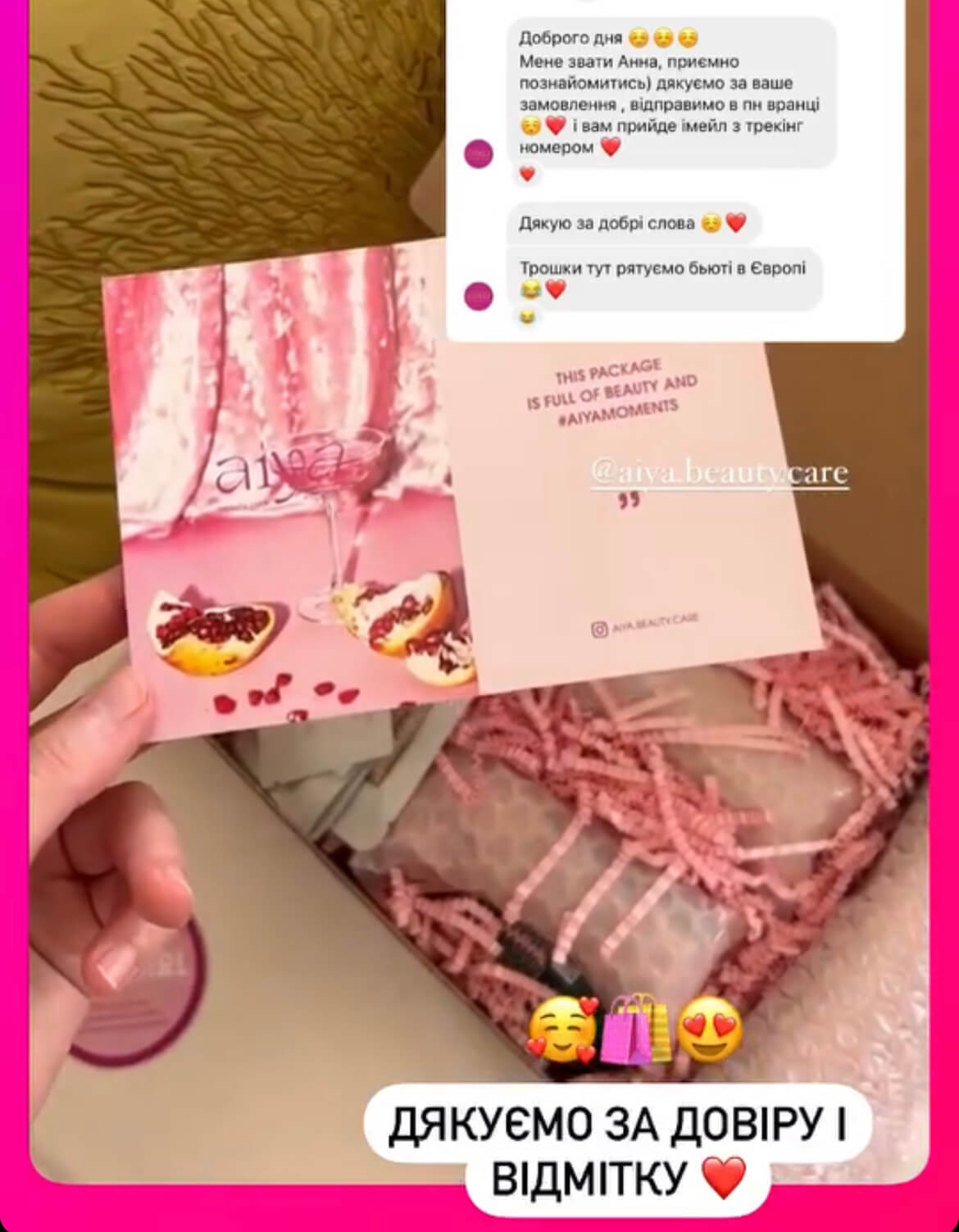 Доброго дня) оформила замовлення на вашому сайті а вже потім дізналася про інстаграм і відкрила для себе що власник бізнесу українка) думаю чому такий ідеальний підбір засобів на сайті - саме те що я шукаю) тепер розумію чому 🩷